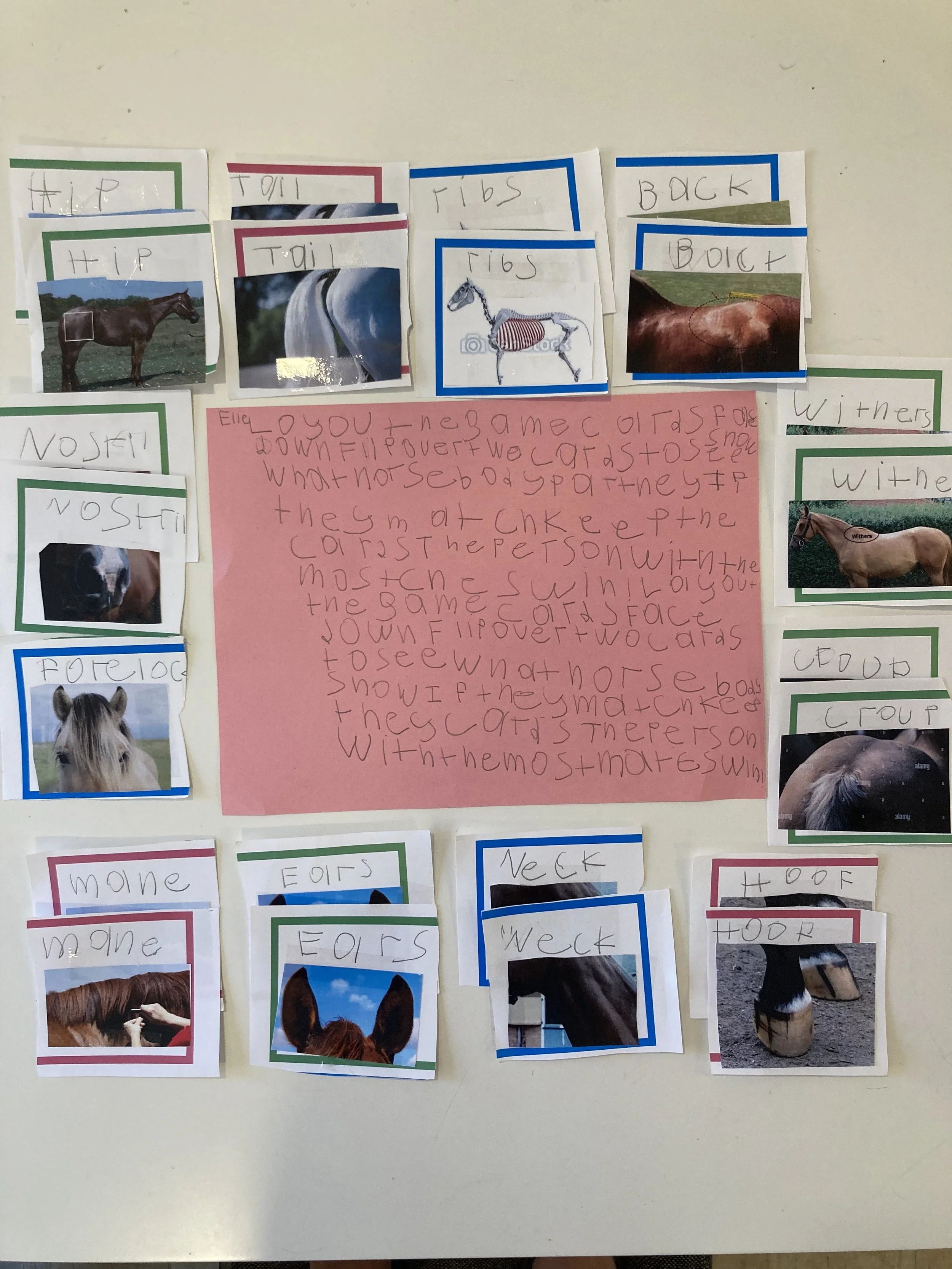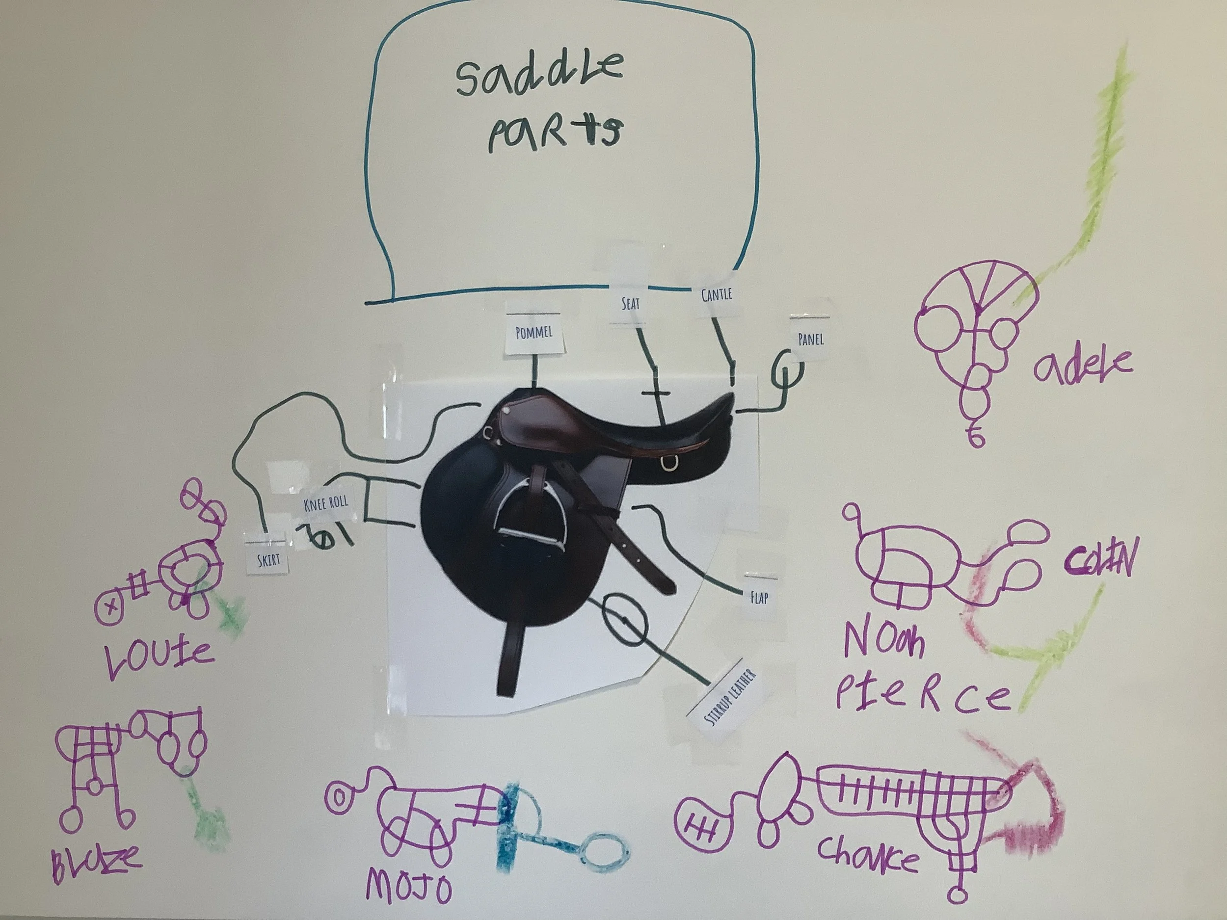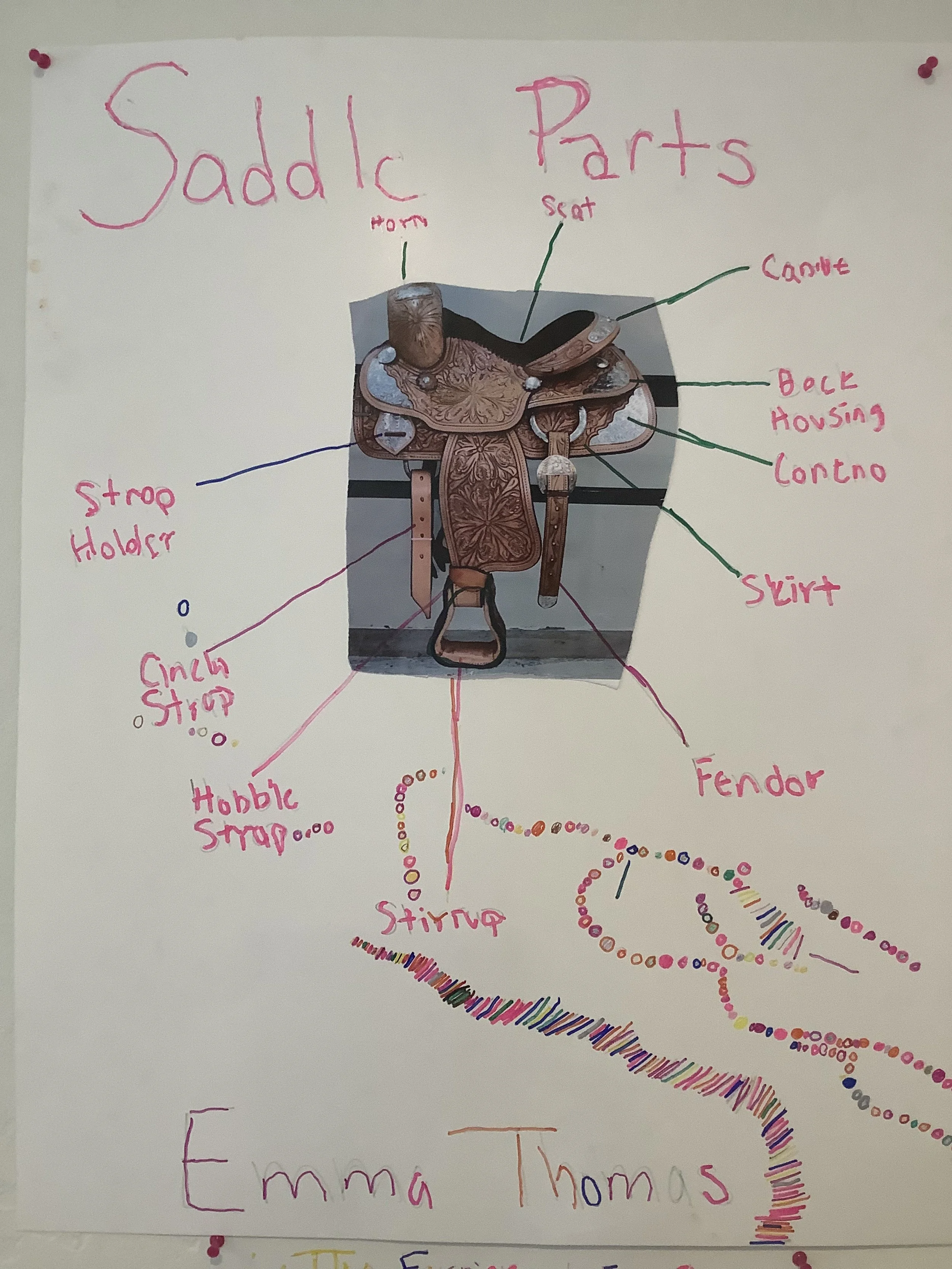 Emma enjoyed watching BJ put the saddles on the various horses. Emma’s favorite part of her project was drawing arrows to the parts of the saddle.