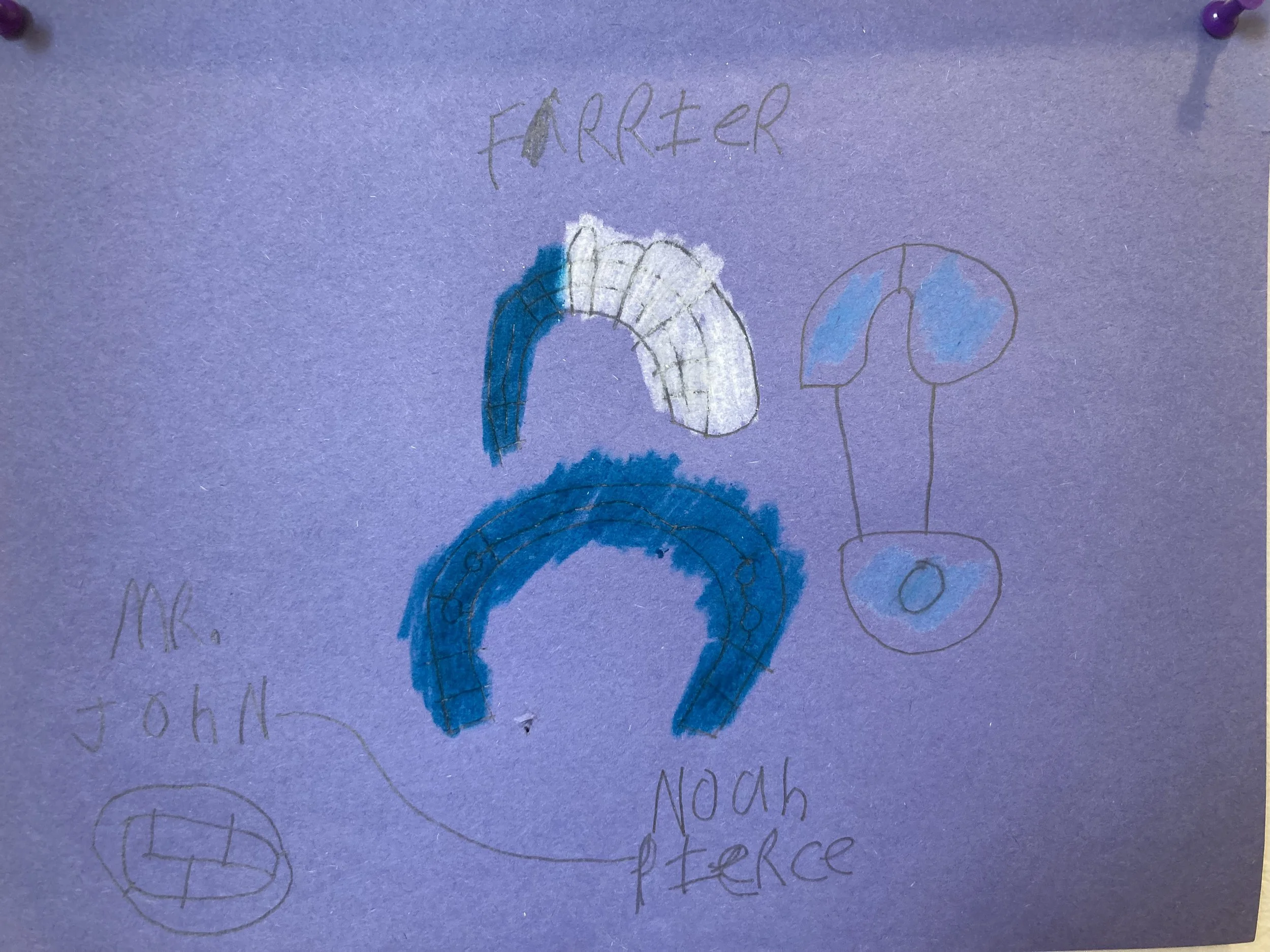 Jack P: Jack was fascinated watching how John the Farrier hammered the shoe to shape it. He thought that was cool. Jack likes the horse racing picture on his powerpoint.